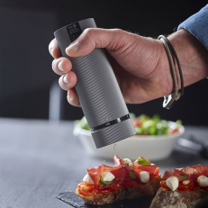 Pepperkvernen er ideell for å fremheve aromaene i ulike typer pepper – svart, hvit, grønn og rød – samt rosépepper (opptil 15 % i blandinger) og korianderfrø. Den leveres med seks forhåndsinnstilte malenivåer, slik at du kan tilpasse resultatet etter behov.Oppladbart Li-ion-batteri