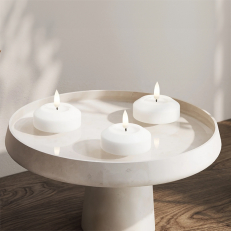 Med sin IP44-klassifisering er lysene beskyttet mot vannsprut og fuktighet, noe som gjør dem egnet for både innendørs- og utendørsbruk. Bruk dem i en fontene i hagen, i en dekorasjonskål på middagsbordet, eller for en avslappende stund i badekaret. De flytende LED telysene tennes ikke når det regner, men kun ved kontakt med vann på undersiden. OBS! Lysene tåler ikke å senkes under vann.Slik gjør du