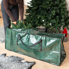 De solide håndtakene gjør oppbevaringsvesken enkel å bære, og den karakteristiske grønne fargen gjør det enkelt å finne igjen juletreet i boden neste jul.