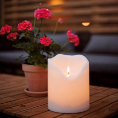 Stort og vakkert kubbelys med et varmt og hvitt lys, som du kan plassere i uteområdet, på balkongen eller i hagen. Det brede kubbelyset har en fin og realistisk flamme som flimrer. I tillegg er det et annet LED-lys inne i kubbelyset, som lyser gjennom veggene med et jevnt lys.